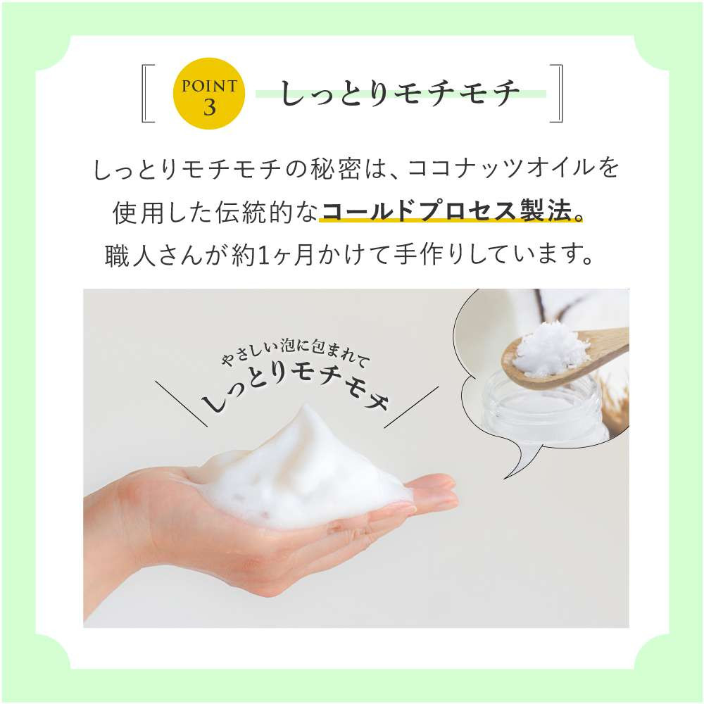 日本の熟練の石鹸職人さんが一か月以上かけて手作りしています。